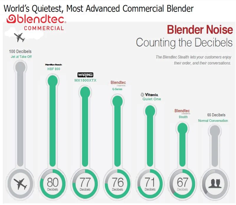 - NOISE BLOCKING The ultimate quiet commercial blender operates at a sound level comparable to a normal conversation with professional grade power